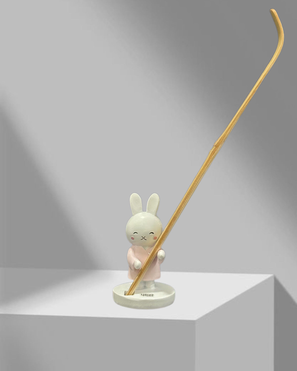 A bunny-shaped scoop holder designed to keep your matcha scoop clean and add a cute touch to your matcha corner.